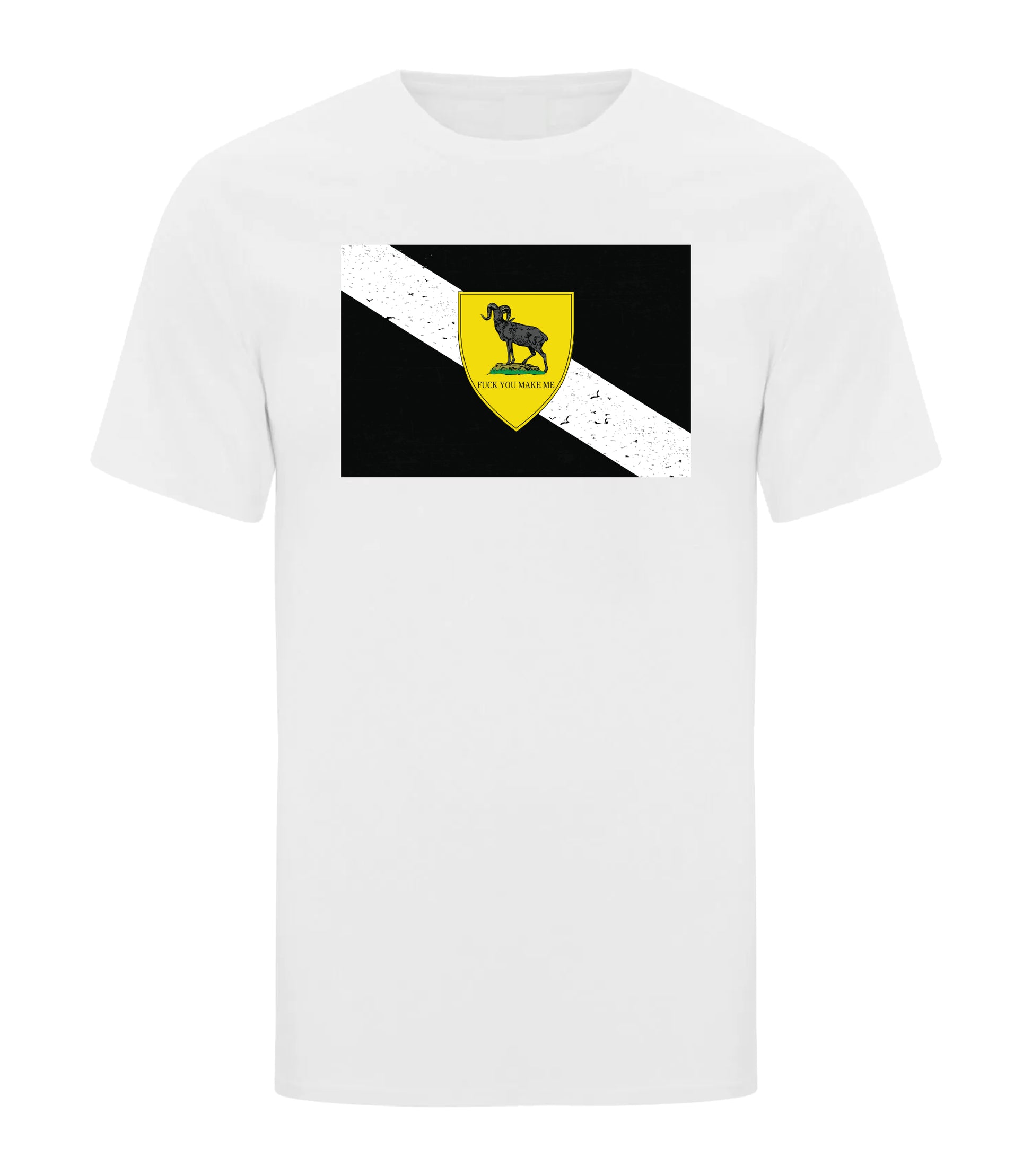 Apparel with custom "Fuck You Make Me (Shield)" artwork.