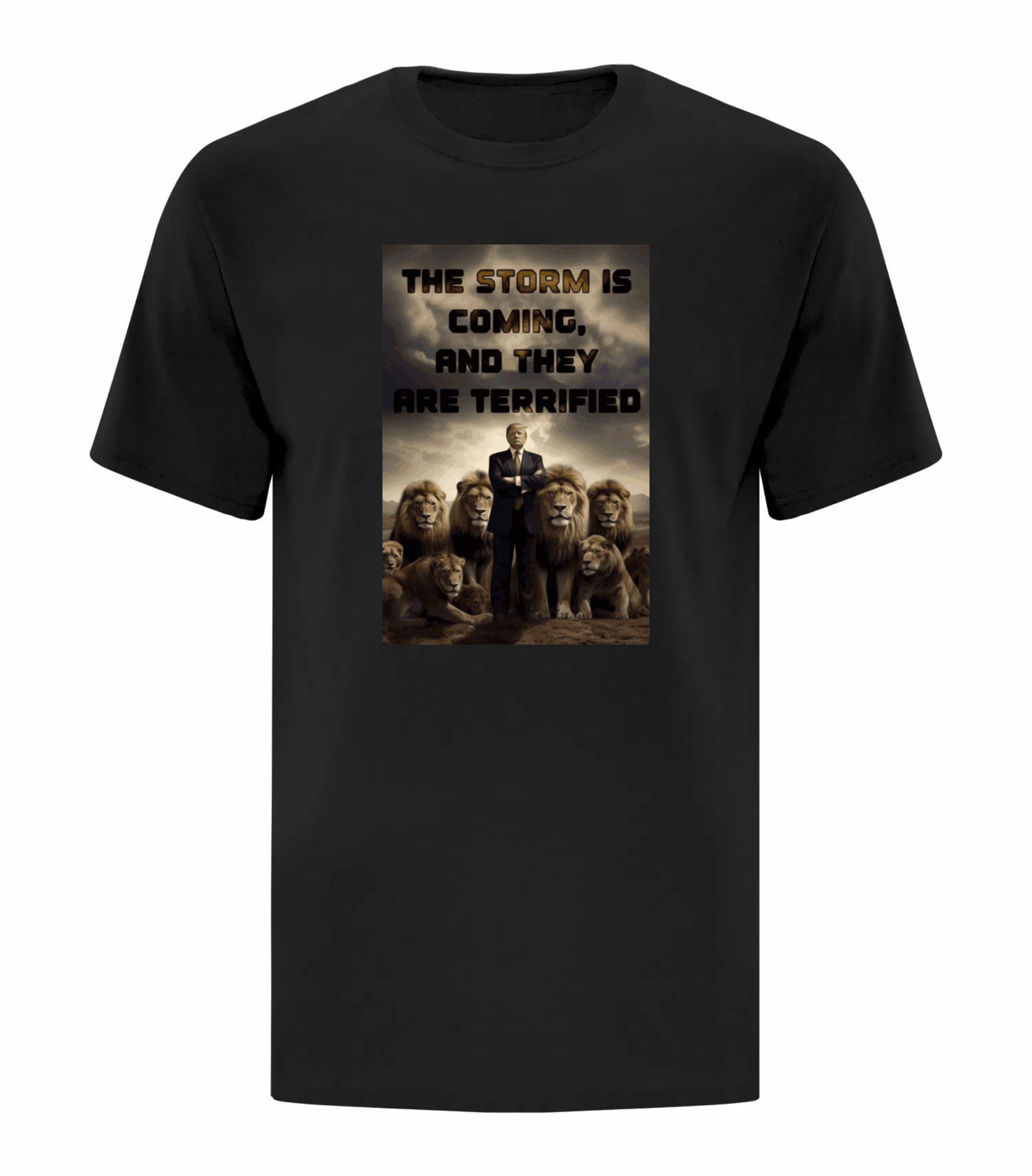 Apparel with custom "Trump - Storm Lions" artwork.